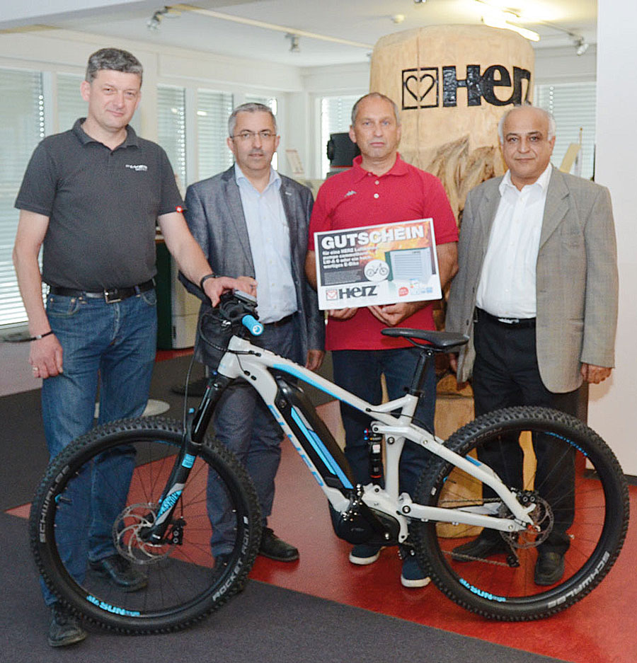Die Freude über den von Dr. Gerhard Glinzerer, Eigentümer der HERZ Gruppe, und Erwin Fuchs, Präsident des KSV, überreichten Gutschein war groß. Dieser wurde nun von Hrn. Klopf bei der HERZ Energietechnik in Pinkafeld für ein E-Bike eingelöst. Übergeben wurde dieses von Geschäftsführer Hrn. Dr. Fesharaki und Vertriebsleiter Hrn. Ing. Renner.