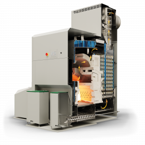 The advantage of this solution is that the filter system is fully integrated into the unit, allowing for optimal, space-saving installation. In addition, due to the integrated filter design, no separate ash collection container is required for the E-filter ash. The fine dust separated by the E-filter is conveyed together with the fly ash via a fully automatic ash discharge system into a common container. The E-filter itself is also equipped with a fully automatic cleaning system, which reduces manual maintenance and cleaning work to a minimum.