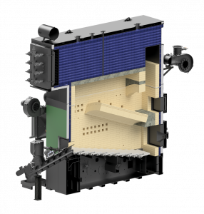 • Brennkammer mit Schubrostfeuerung